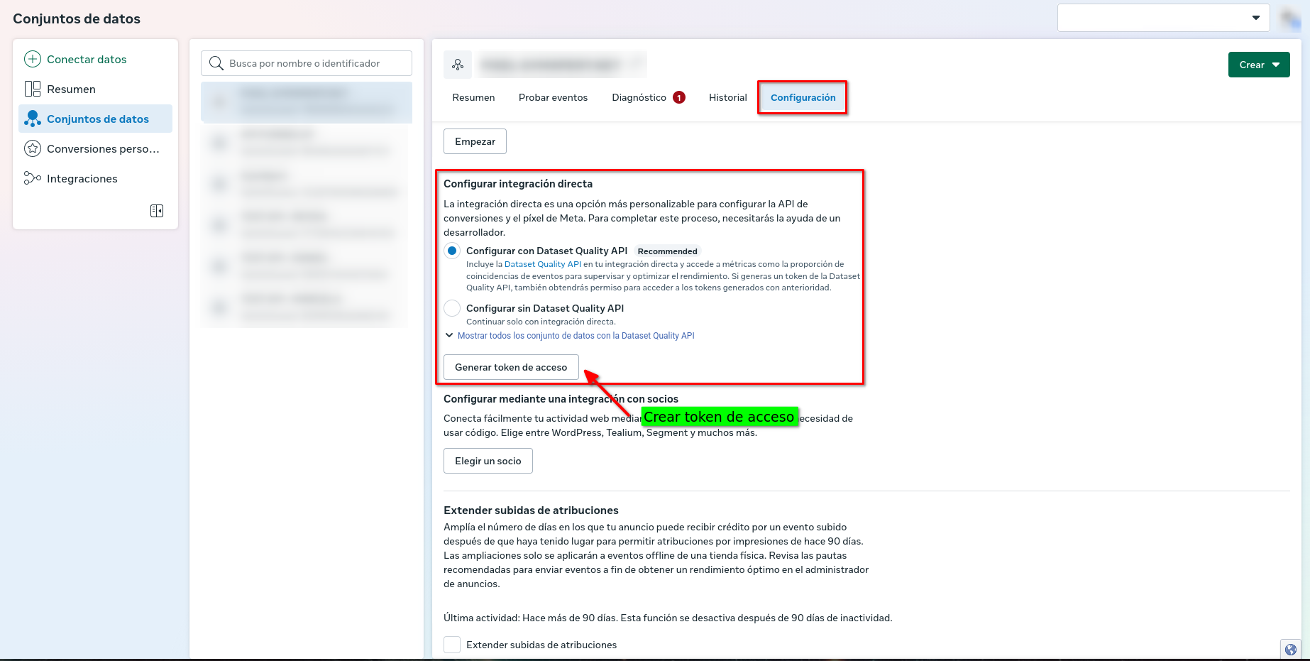 - Un Token de acceso generado desde la configuración de la API de Conversiones en tu Business Manager.