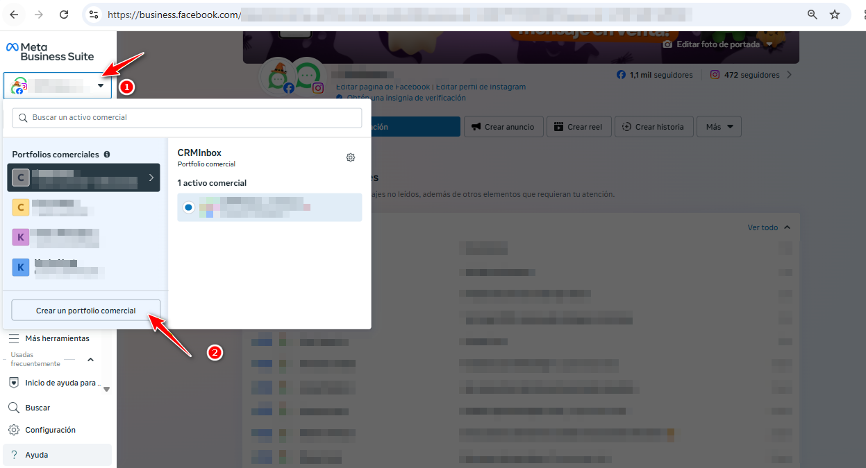 Crear portafolio comercial en meta