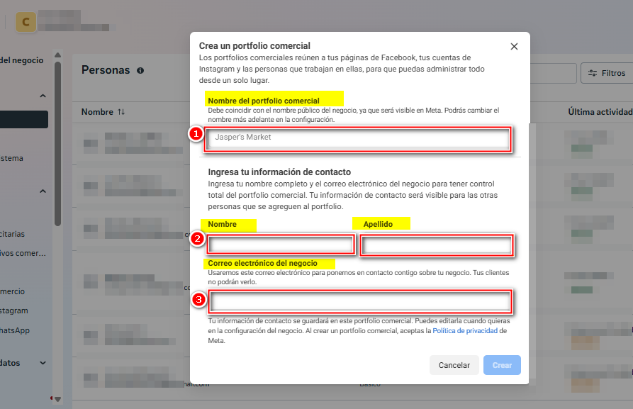 Pasos para crear un portafolio comercial en meta