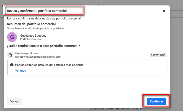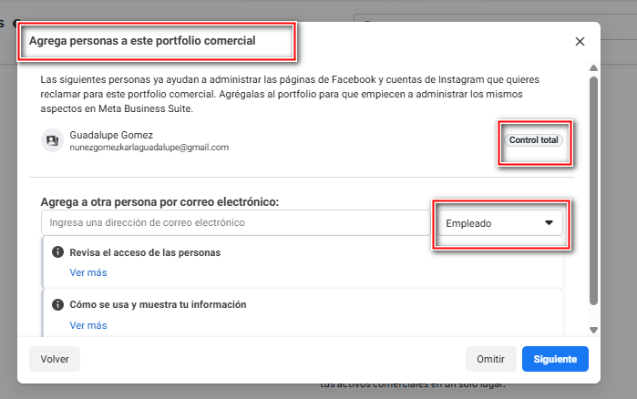 Paso 5: Agrega personas o administradores a tu portafolio comercial
