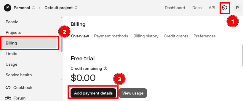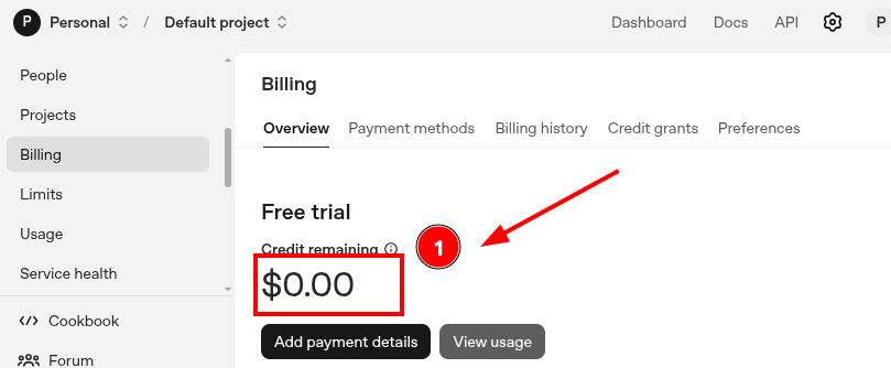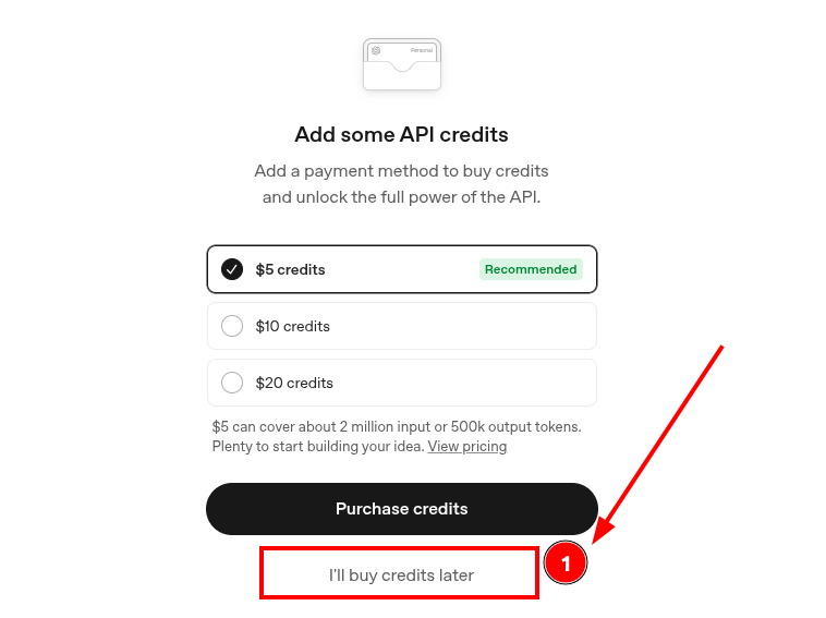 Para poder usar los modelos de API, necesitas agregar crédito a tu cuenta: