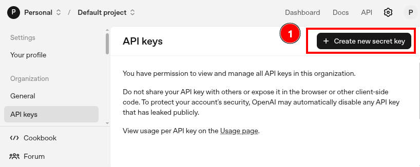 3.- Haz clic en "Create secret key"