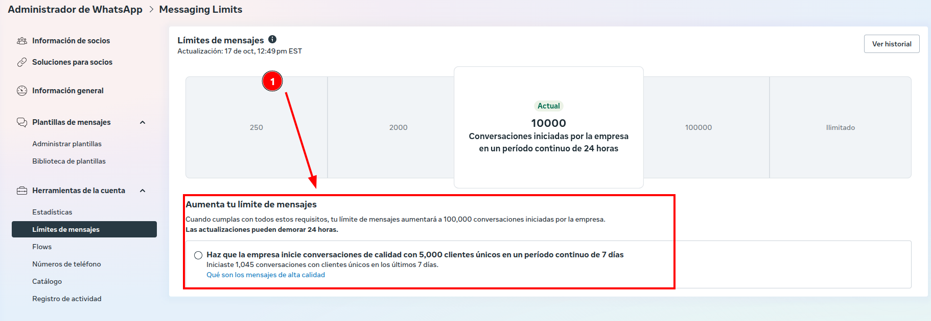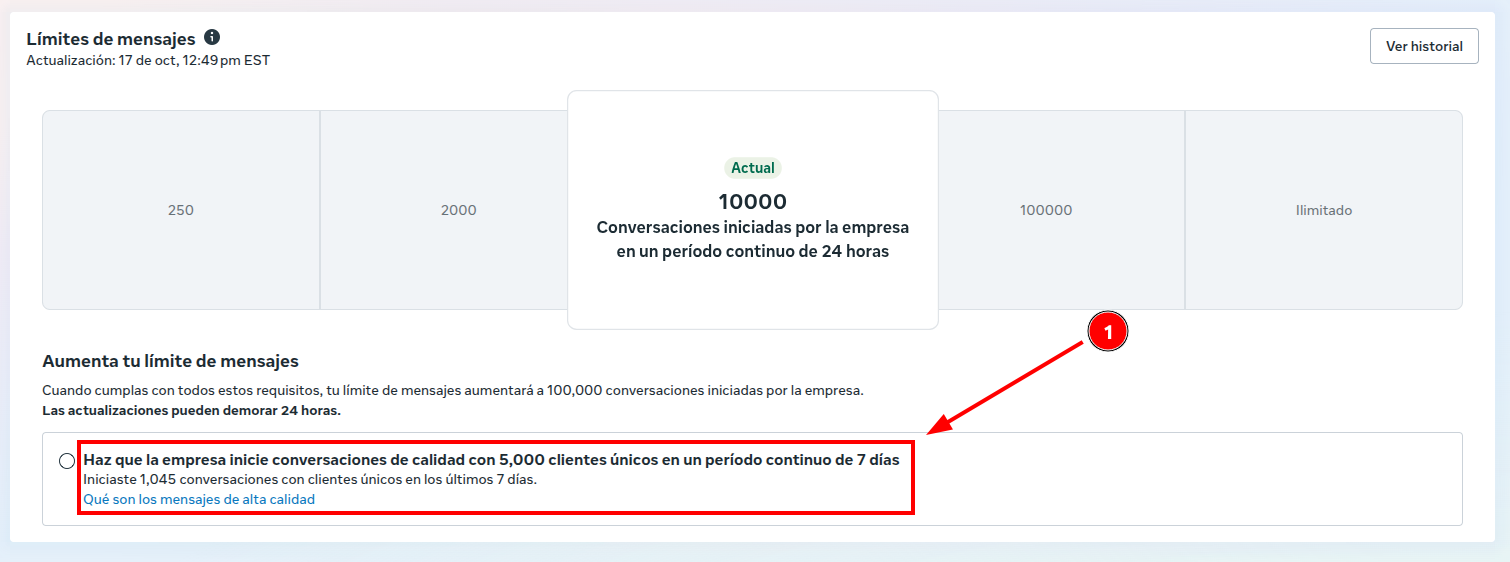 → Para subir: 1,000 conversaciones con clientes únicos en 7 días