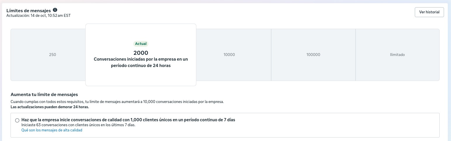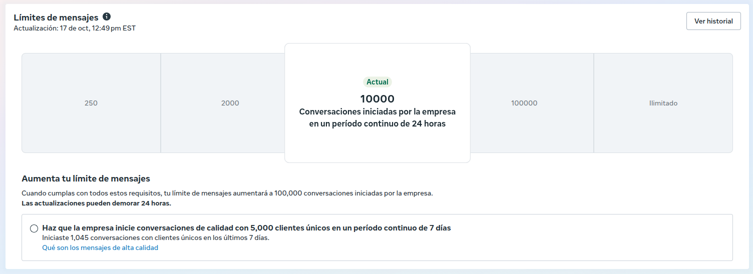 Límite actual: 10,000 conversaciones/día